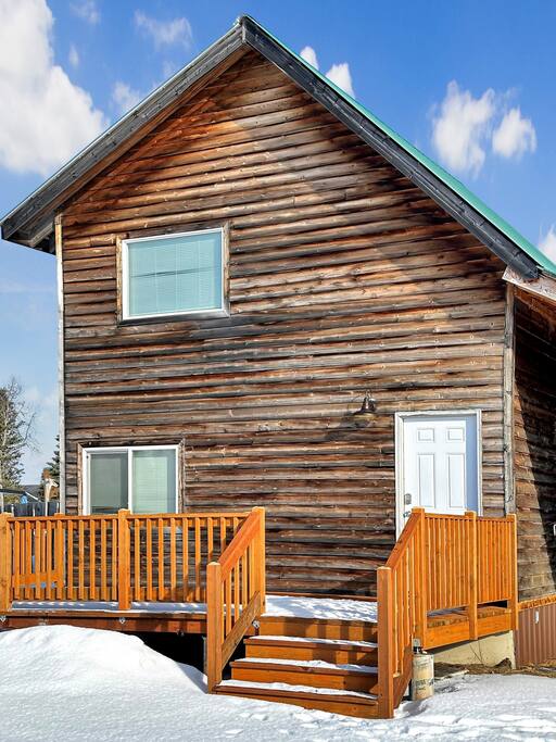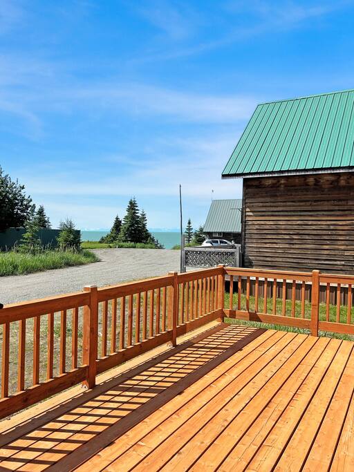 One of the best beach properties in all of Kenai. Most Kenai beachfront properties are inaccessible to the beach because the bluff is usually 150ft. Here at Kenai Beachfront Cabins we have an easy slope driveway down to the beach. The height of the bluff is only about 30ft which makes for magical views across the Cook Inlet. We are also very close to Homer. So if your doing a Salmon and Halibut fishing vacation then we are probably one of the best located spots due to accessibility from each body of water.