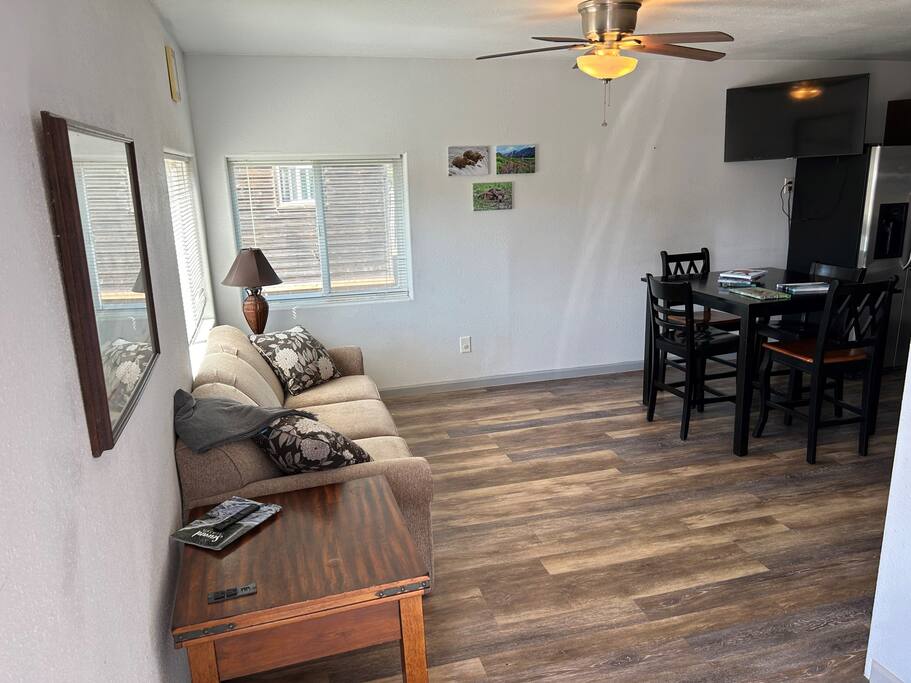 Entering through the front door the stairs are straight ahead and living room and fully stocked kitchen. There is a full bath on the first floor as well as the washer/dryer. Relax in the living room on the couch and enjoy some TV. Dining table is provided, and the kitchen has all the necessary items to enjoy a meal. Upstairs is a vaulted loft that sleeps 4. There is 1 king size bed and 2 queen size beds for a total sleeping availability for 6 people. There is also a half bath and walk in closet on the 2nd floor. There is a carport for dry parking. Some of the Amentities - Smart TV - Wifi - Coffee Maker, cooking utensils, pots, pans, for basic cooking needs - Linens, bedding, and towels, - Body wash, shampoo, conditioner, soap, - Hairdryer - washer/dryer, laundry detergent - Propane BBQ