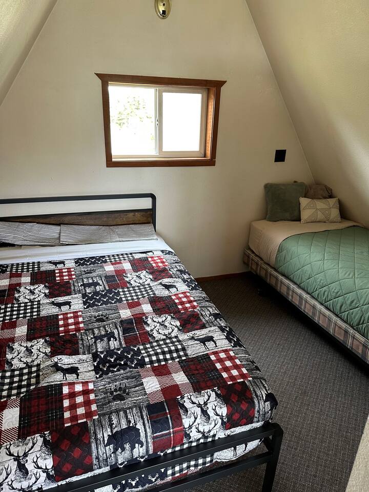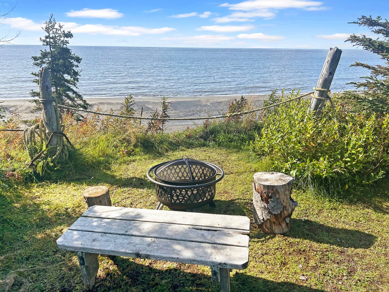 The Space The main floor has the living room with smart tv, Starlink business wifi speeds. The kitchen is stocked with all utensils, pots, pans and refrigerator. A full bathroom is on the main floor. The 2nd floor provides a loft with 2 queen size beds and a closet Walk outside to the bluffs edge and enjoy a fire in yard at the firepit overlooking the Cook Inlet. ***Amenities include: - Smart TV - Wifi - Coffee Maker, cooking utensils, pots, pans, for basic cooking needs - Linens, bedding, and towels, - Body wash, shampoo, conditioner, soap, - Hairdryer - washer/dryer, laundry detergent - Propane BBQ Guest Access Guests have full access to the cabin, the property and beach as far as you can walk. If you need more space we have 3 other cabins on site. Other things to note Parking is available for 2 cars. There are cameras observing the entrance to maintain security