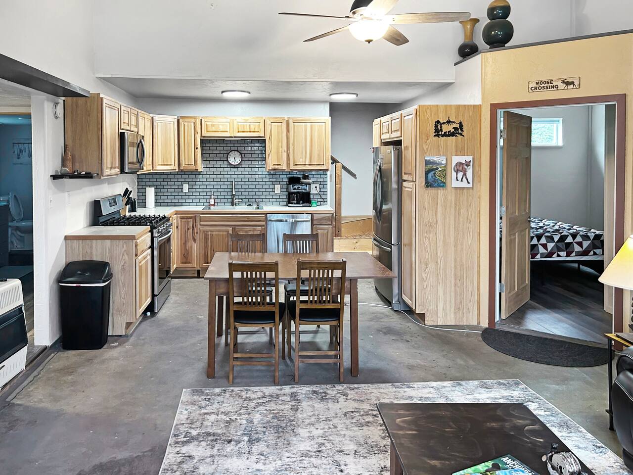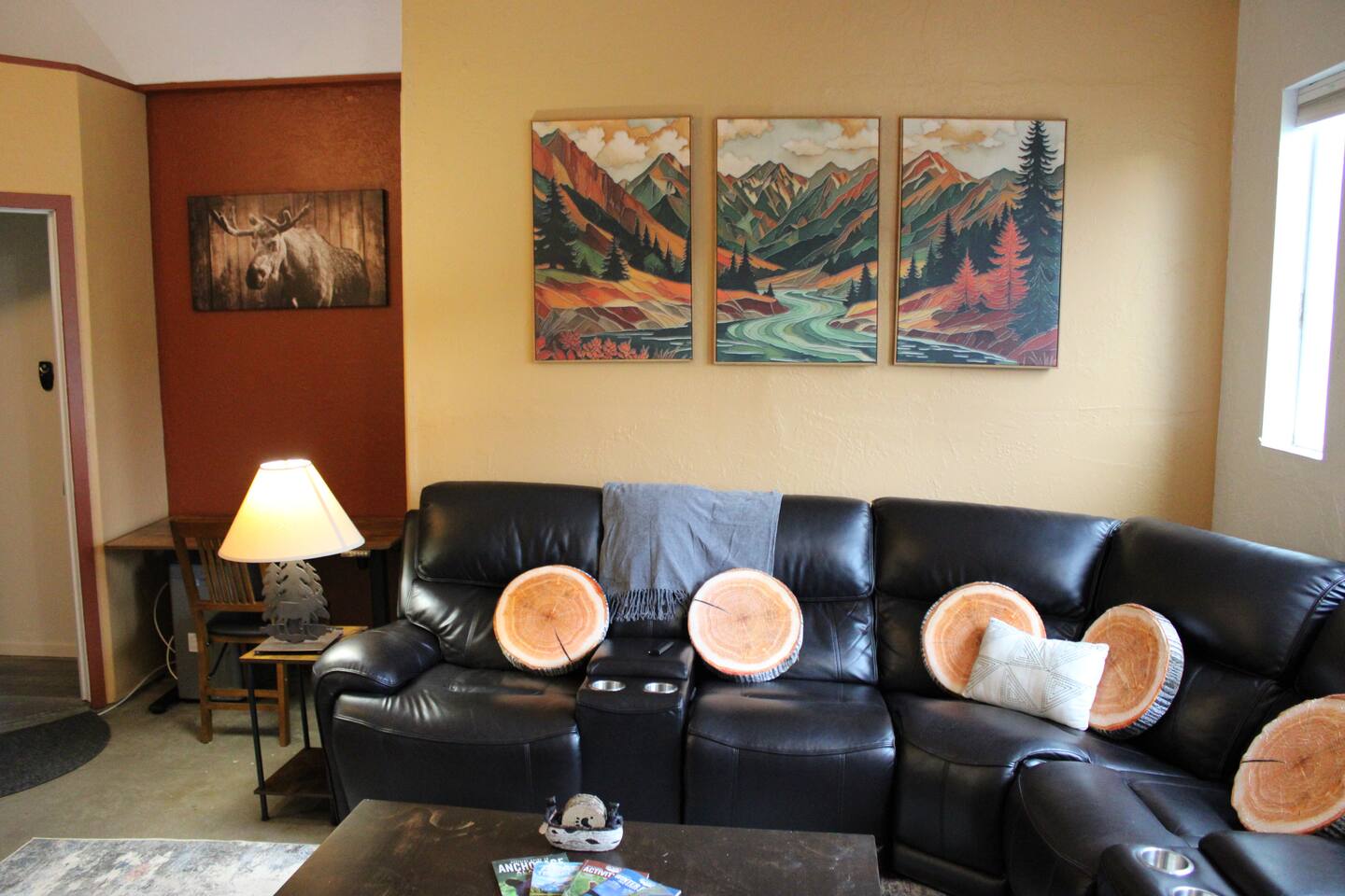 The Space Walk into the Alaskan entryway that leads you through the main door to the vaulted ceiling living room. A well apportioned kitchen with all the home stocked items and utensils. On the first floor is the Primary bedroom with a king size bed, bathroom and washer/dryer. Walking up the stairs to the 2nd floor you will find a private bedroom with a queen size bed, twin bed and a gorgeous view looking out to the Cook Inlet and water. There is plenty of parking for 3 cars. ***Amenities include: - Smart TV - Wifi - Coffee Maker, cooking utensils, pots, pans, for basic cooking needs - Linens, bedding, and towels, - Body wash, shampoo, conditioner, soap, - Hairdryer - washer/dryer, laundry detergent - Propane BBQ