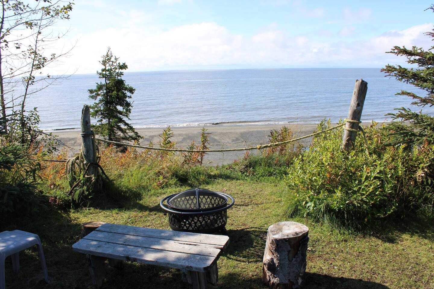 This cabin has an amazing, large green yard with a garden for relaxing after your salmon catch. Its is a few steps to the beach where you can fish off the beach or go for an Alaskan beach walk. One of the best beach properties in all of Kenai. Most Kenai beachfront properties are inaccessible to the beach because the bluff is usually 150ft. Here at Kenai Beachfront Cabins we have an easy slope driveway down to the beach. The height of the bluff is only about 30ft which makes for magical views across the Cook Inlet. We are also very close to Homer. So if your doing a Salmon and Halibut fishing vacation then we are probably one of the best located spots due to accessibility from each body of water.
